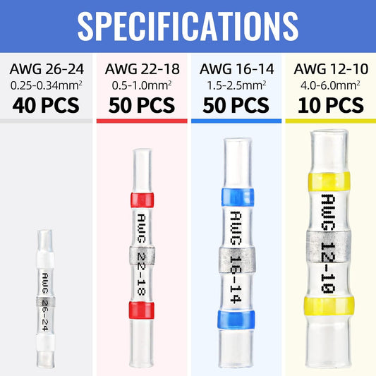 150 PCS Solder Seal Wire Connector Kit, Heat Shrink Butt Terminal Waterproof Insulated Electrical Butt Splice for Automotive Marine