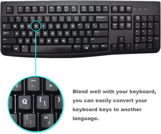 2PCS Universal English Keyboard Stickers, Matte Replacement English Keyboard Stickers with White Font on Black Background for Laptops and Desktops, Keyboard Alphabet Stickers