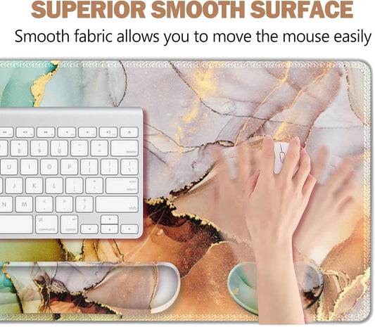 Large Gaming Mouse Pad, Keyboard Wrist Rest Pad & Wrist Support Mousepad Set, Stitched Edge, Extended, Non-Slip Base, Memory Foam Desk Mat for Office, Home, Abstract Art Marble
